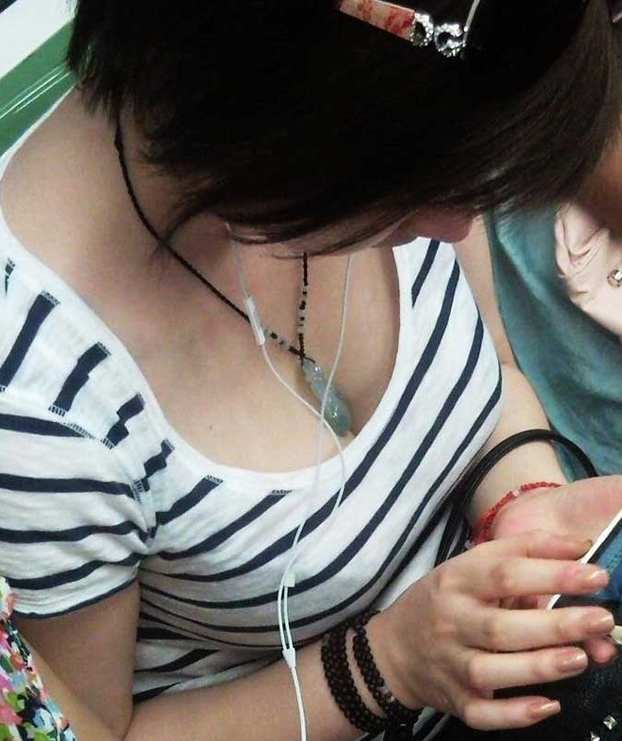夏天来了客车上的空调抵挡不住气温的炎热低胸美女性感绽放吧(2)
