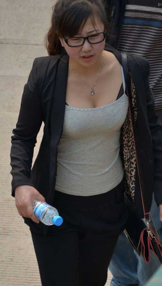性感女人硕乳勾人!街拍肉乎乎的西装美女穿的太性感,挺拔啊(4)