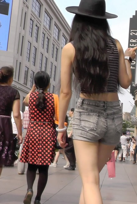 街拍性感牛仔紧身短裤美女细腰翘臀长腿!雪白修长的大腿,想犯罪(4)