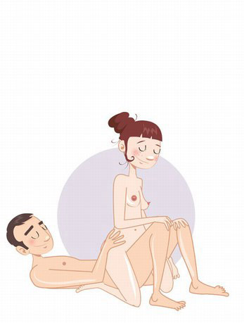 男人仰卧,弯曲双腿,膝盖向上,而女人则反向坐在男人的肉棒上面,双手搭在男人的膝盖上面,以保持平衡,此时女生只需要在上面蠕动即可达到高潮,双方都很享受。女性占据着性爱的主动权哦。