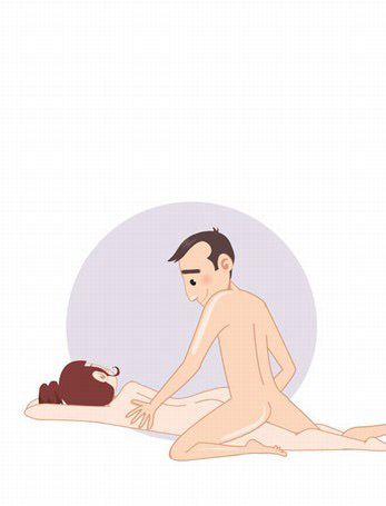 女生趴在床上,双腿稍微分开点。而此时男生则骑在女生的屁股上面,双膝跪床,从后面插入。当然女生的臀部要配合好男性的阴茎哦。而男生的左手则搭在女生的背部,以便更好的发力挺进深处。